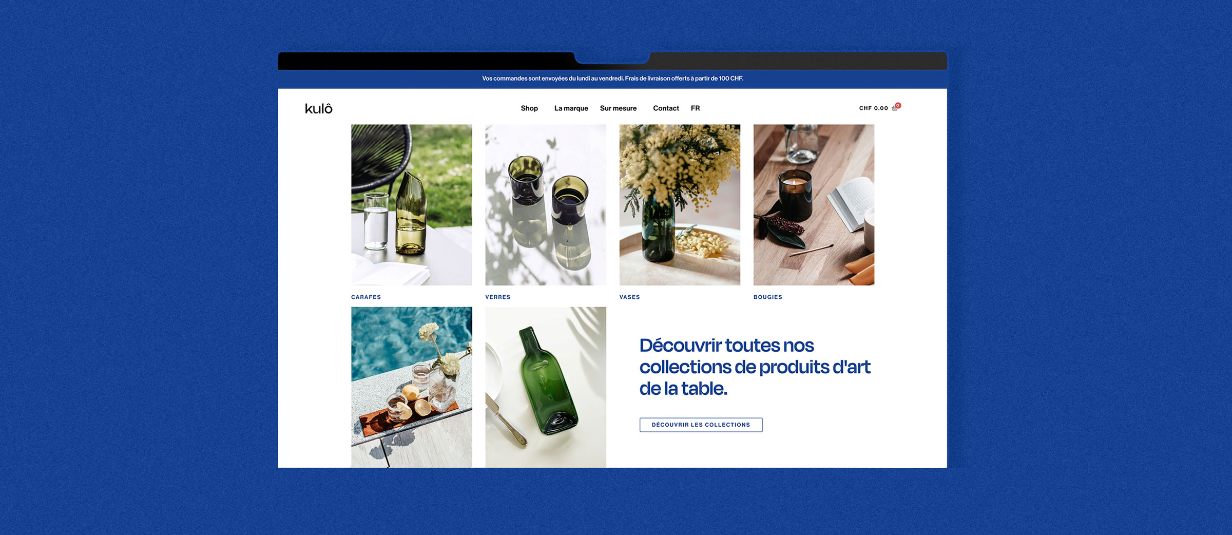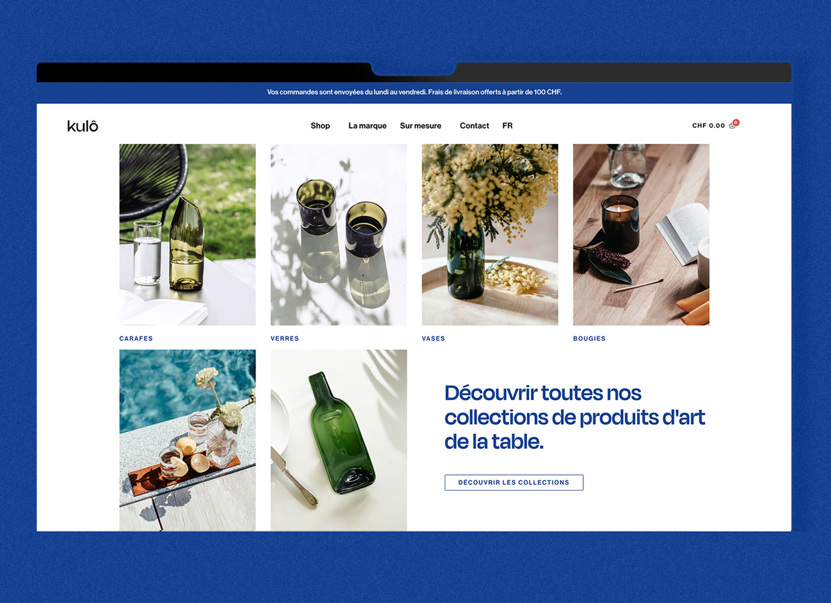 Fondée en 2020 à Fribourg, kulô est une entreprise spécialisée dans la transformation de bouteilles recyclées en produits d’art de la table.